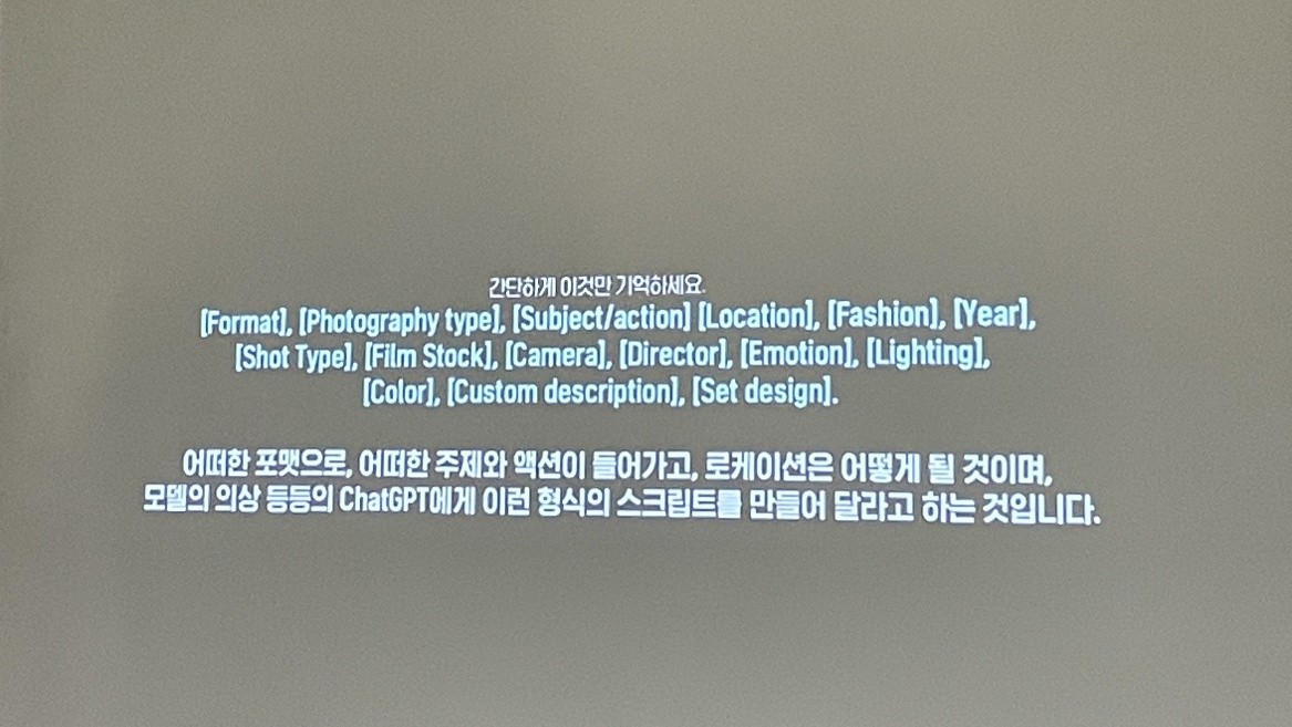 이어 강의에서는 AI 활용의 실제 사례와 그 의미가 소개되었습니다. 글로벌 브랜드들의 캠페인에서 생성형 AI를 활용해 브랜드 스토리를 시각적으로 확장하거나, 소비자 데이터 기반으로 개인화된 메시지를 제공하는 방식이 설명되었습니다. 이러한 과정에서 중요한 점은 기술적 가능성보다 ‘브랜드 정체성을 어떻게 드러낼 것인가’라는 관점이라는 말씀이 기억에 남았습니다. 즉, AI는 수단일 뿐이며, 광고의 본질적 가치인 메시지와 브랜드다움은 여전히 사람이 주도해야 한다는 점이 강조되었습니다. 또한 AI가 제시하는 결과물을 그대로 사용하는 것이 아니라, 광고인이 그것을 비판적으로 해석하고 브랜드 맥락에 맞게 재구성하는 과정이 필수적이라는 지적도 있었습니다.