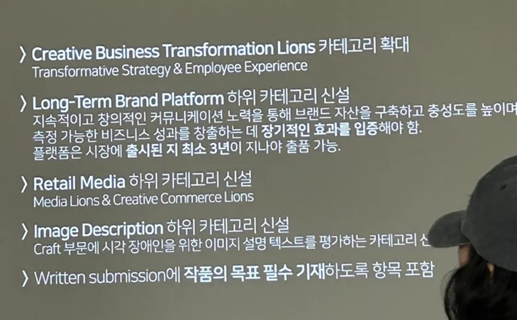 이번 강의의 제목은 [국제광고제 출품 경향 및 노하우]였으며, 제일기획의 김윤호 팀장님께서 진행해주셨습니다. 광고인을 꿈꾸며 다양한 고민을 가지고 있었던 저에게 이번 강의는 국제광고제의 수상작 흐름과 출품 전략을 이해하는 데 큰 도움이 되었습니다.
